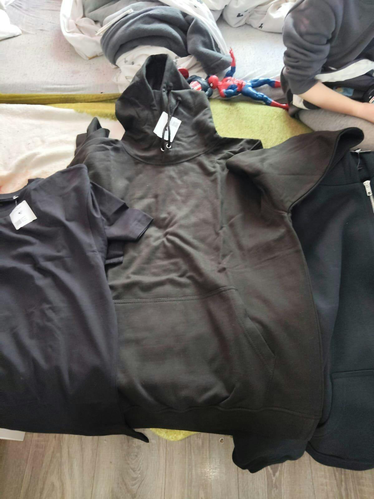 Der Hoodie ist schön kuschelig, Stoff scheint hochwertig zu sein auch das T-Shirt und die Jacke. Allerdings ist die Jacke in over size also wer sie nicht so tragen möchte bestellt sie ne Nummer kleiner. Ebenfalls ein Lob an den Kundenservice der nach meinem Packet gesucht hat, er hat sehr schnell auf meine Nachricht reagiert und nach einer Lösung gesucht. Also gerne wieder
